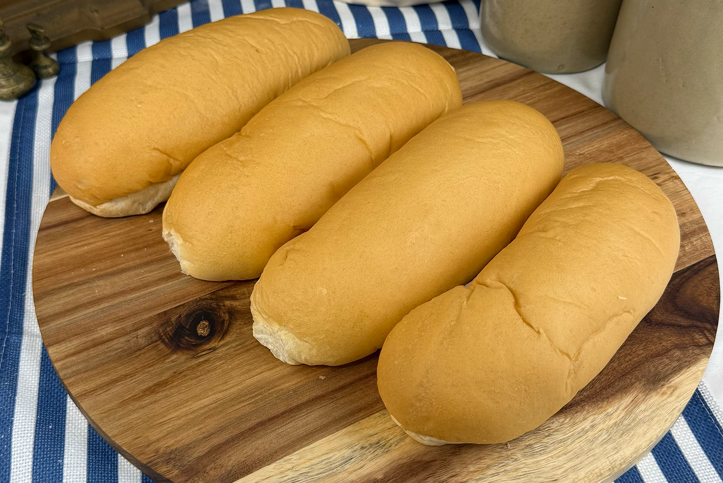 Soft, long rolls with a gentle chew, perfect for hot dogs, sausages, or barbecue fillings.