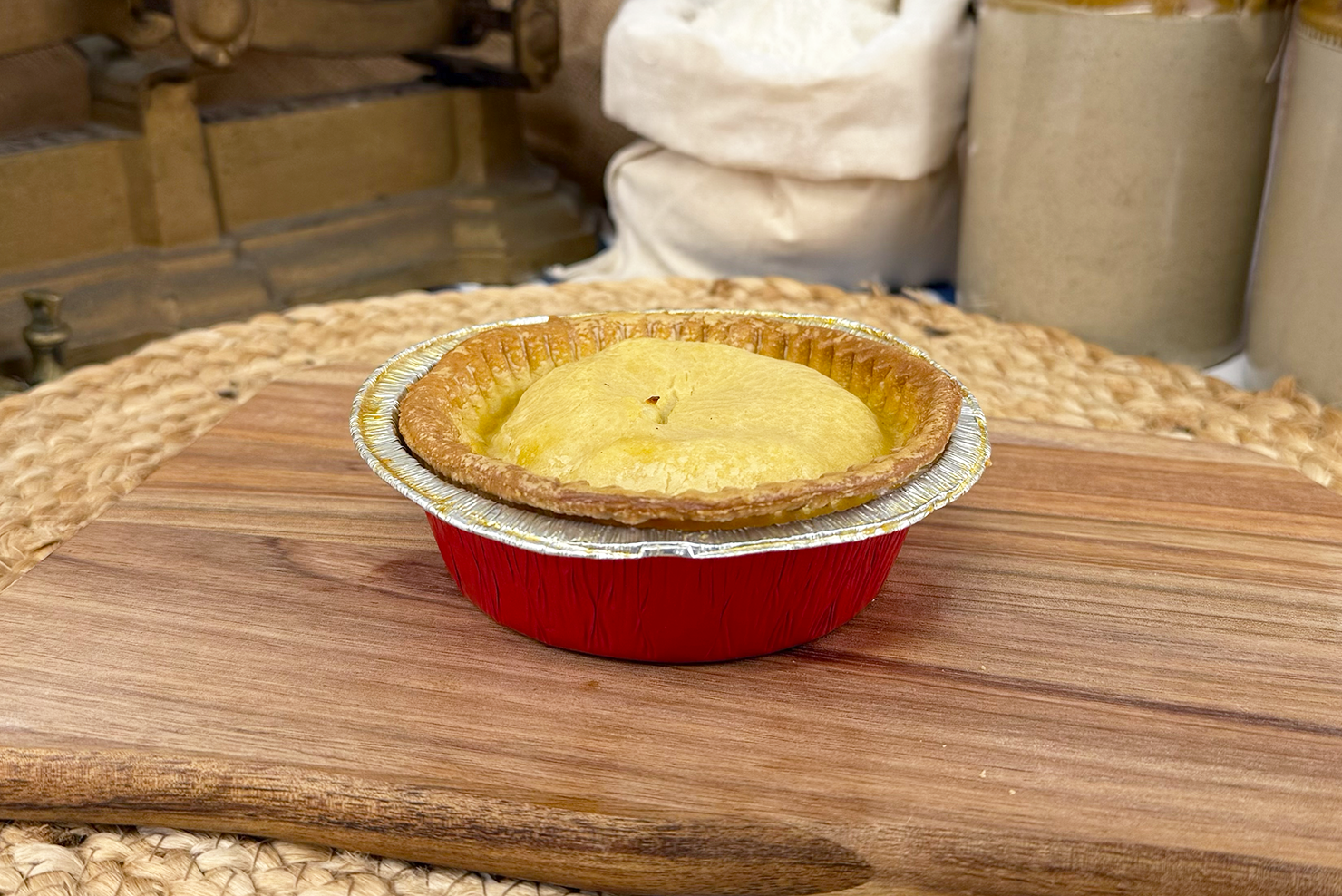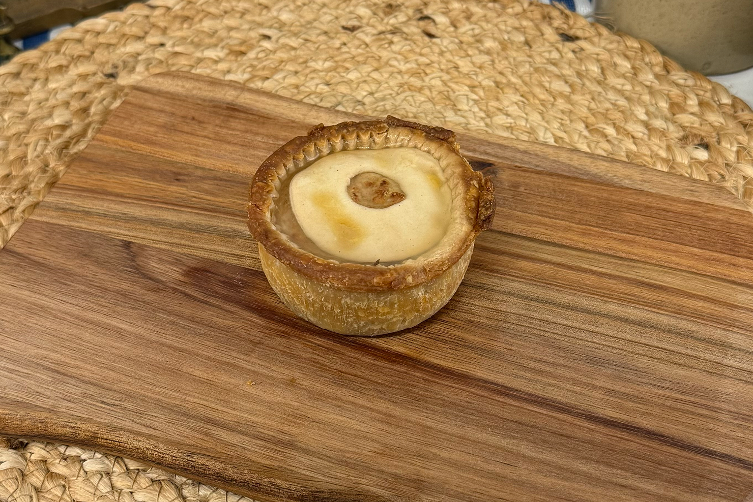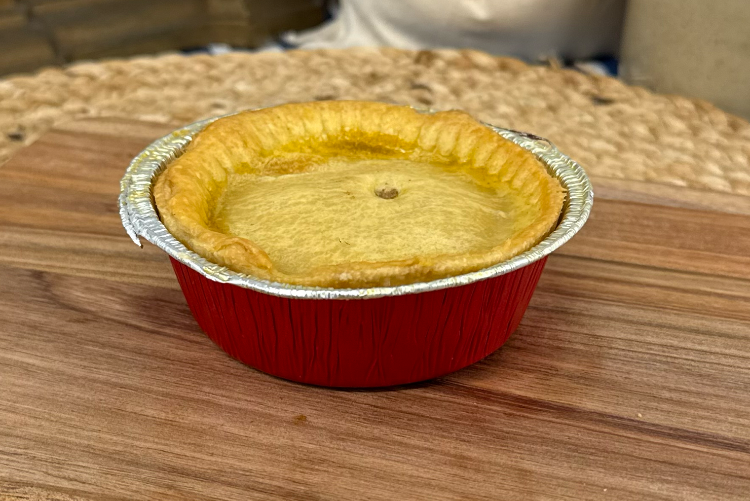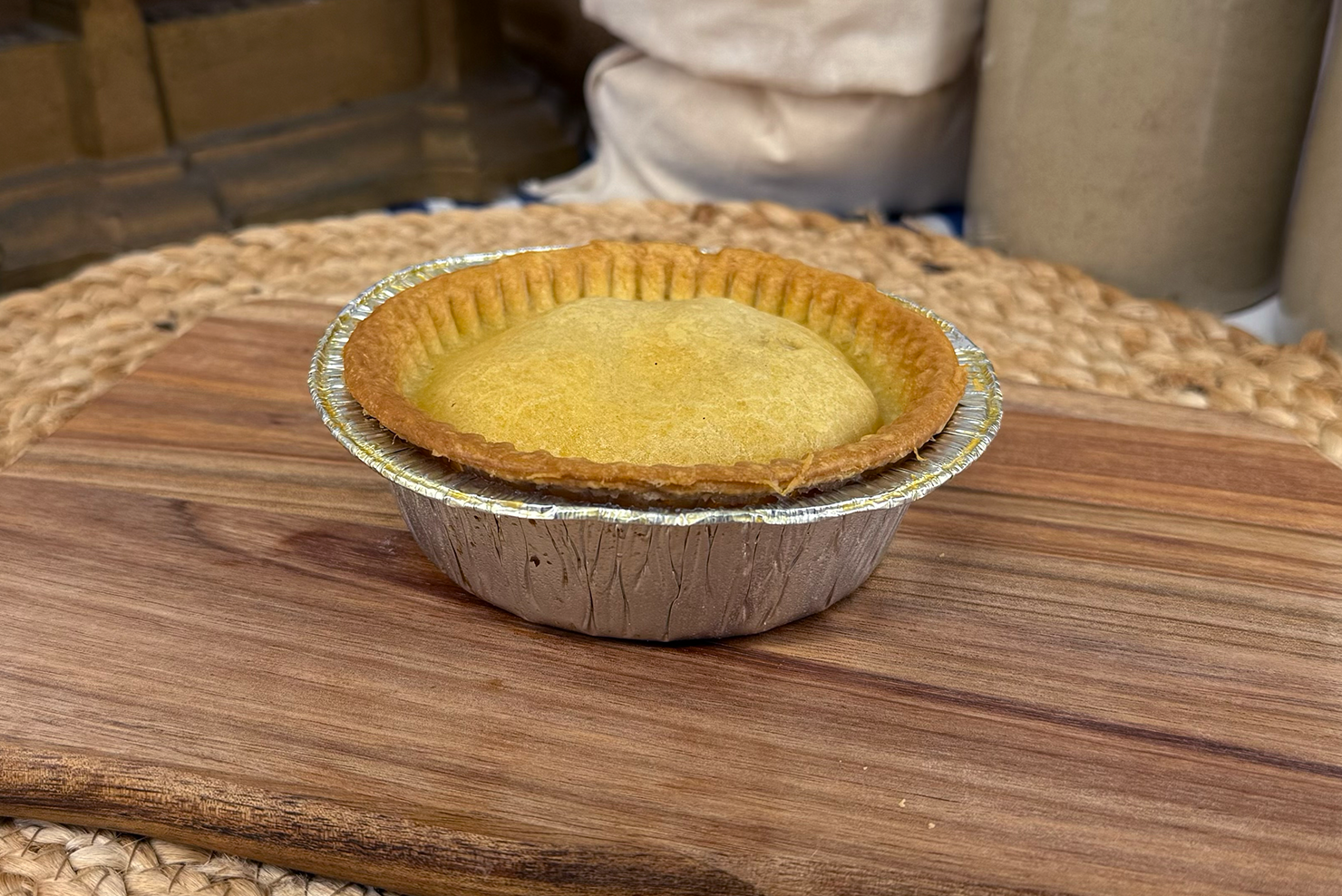 A regional favourite — minced beef, carrots, peas, and onions in savoury gravy, baked in traditional shortcrust pastry.