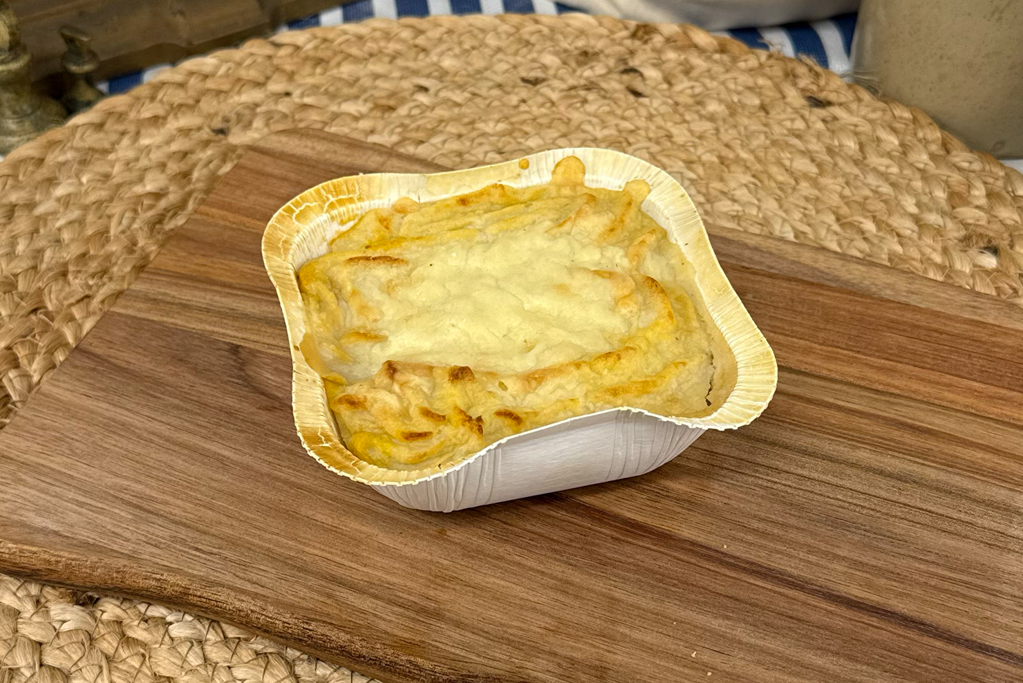 Seasoned minced beef with carrots and onions in savoury gravy, topped with creamy mashed potato and a sprinkle of cheese.