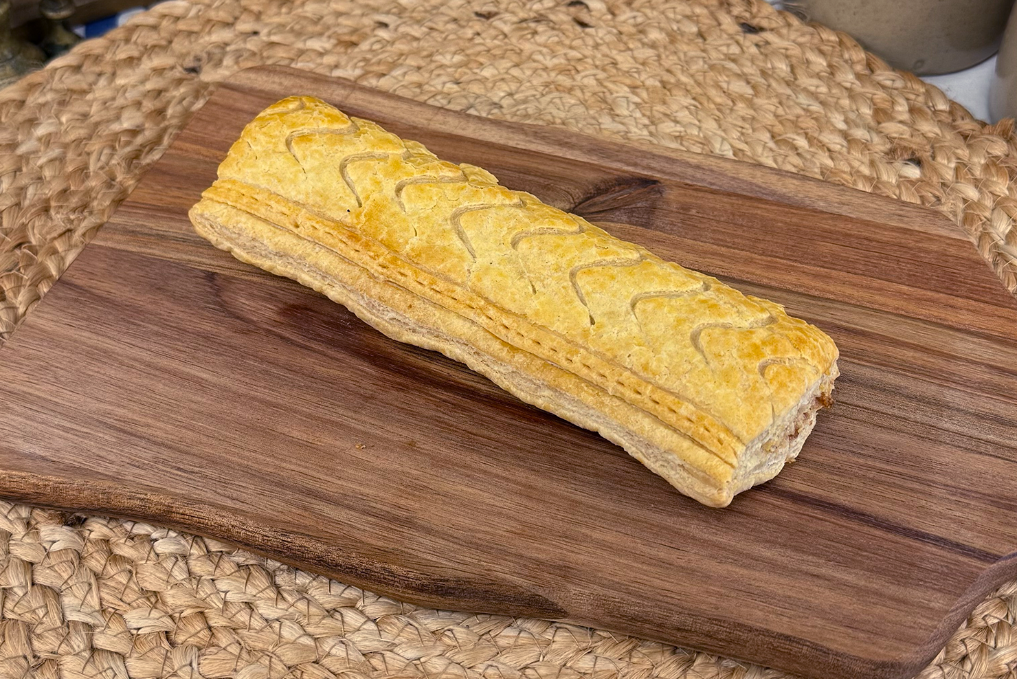 Delicately spiced sausage meat wrapped in flaky puff pastry, baked fresh each day for cafés, shops, and catering menus.