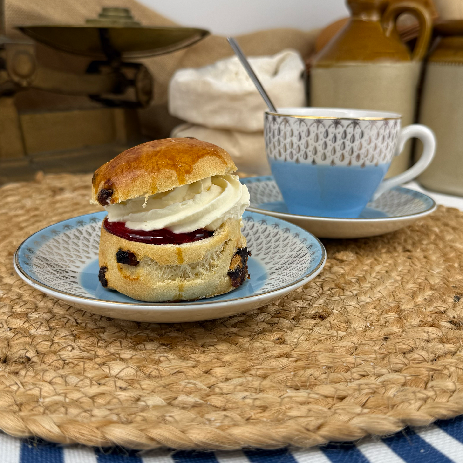 Fruit scones filled with jam and fresh cream, perfect with tea or coffee service.